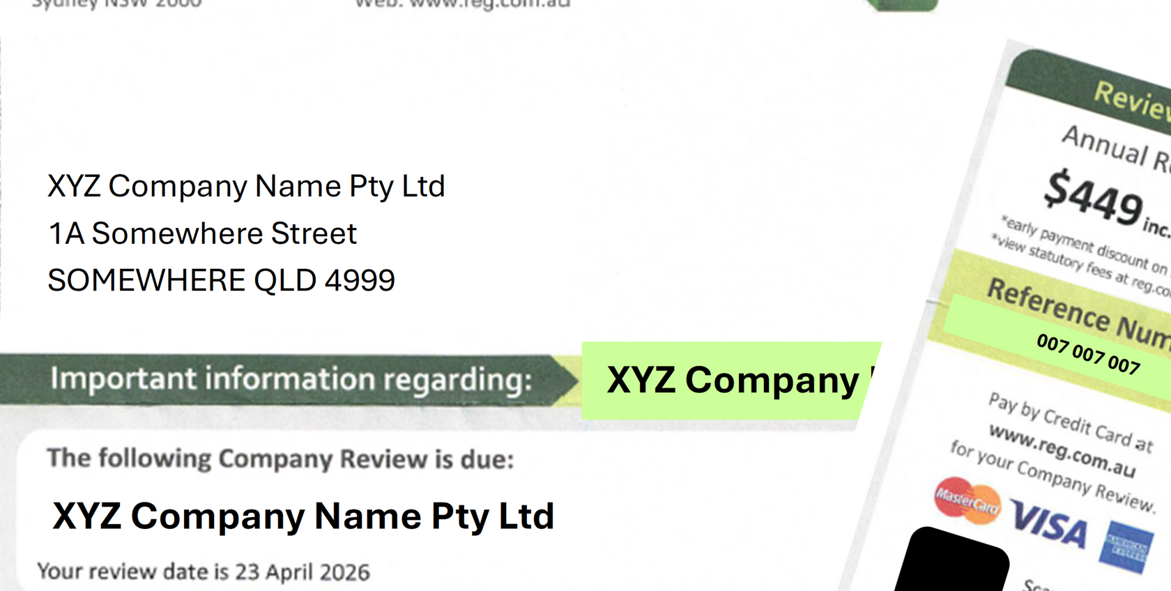 Clients have recently alerted us to renewed activity - so if you receive material from organisations such as "Regxxxry Ausxxxxia", "Regisxxtion" or "Online Buxxness Rxxistration" please do not act on them.